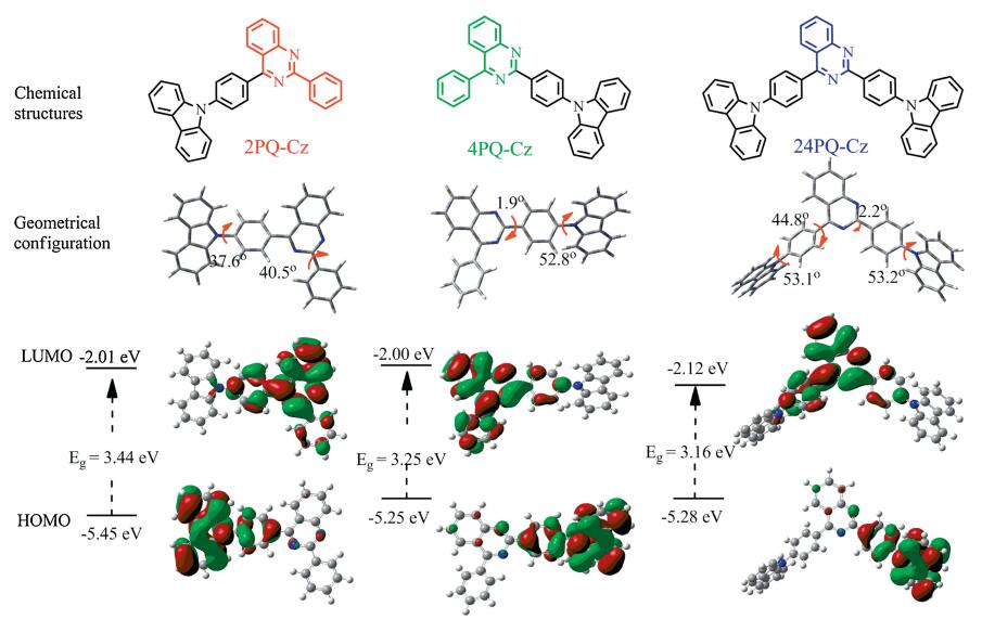 Table 1. The HOMO, LUMO, Eg, ES, ET and ΔEST values of 2PQ-Cz, 4PQ-Cz, and 24PQ-Cz.