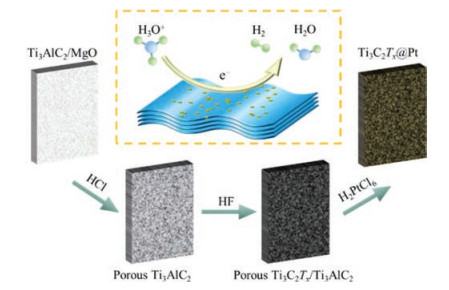 Pt immobilized spontaneously on porous MXene/MAX hybrid monolith for hydrogen evolution reaction