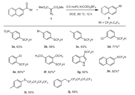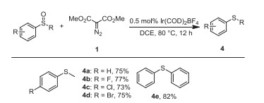 Wenqing Lu, Wenlin Li, Yicheng Zhou, Yongbin Xie, Wenbo Chen. Iridium(Ⅰ)-catalyzed deoxgenation of fluoroalkylsulfoxides with dimethyl diazomalonate to access fluoroalkylthioethers[J]. Chinese Chemical Letters,