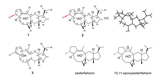 . Niduenes A−F, six functionalized sesterterpenoids with a pentacyclic 5/5/5/5/6 skeleton from endophytic fungus Aspergillus nidulans. Chinese Chemical Letters,
