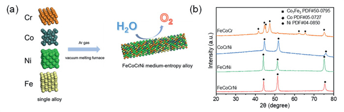 Figure 1.  (a) Schematic of MEAs as OER catalysts synthesized by vacuum melting. (b) XRD patterns of the initial MEAs.