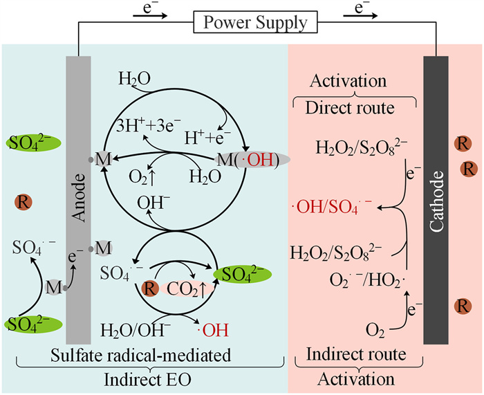 Figure 2  Sulfate radical-mediated oxidation and anode-cathode synergy.