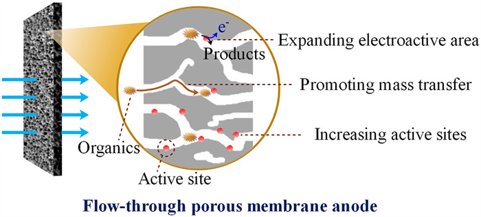 Figure 4  Diagram of the porous membrane anode in flow-through mode.