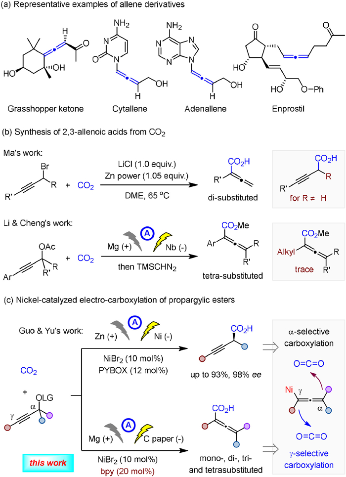 Citation:  Yuqing Zhong, Mengmeng Jiang, Deyong Yang, Nan Feng, Ying Sun, Huimin Wang, Feng Zhou. Nickel-catalyzed electrochemical carboxylation of propargylic esters with CO2 to 2,3-allenoic acids[J]. Chinese Chemical Letters, 2025, 36(12): 111169. doi: 10.1016/j.cclet.2025.111169 shu