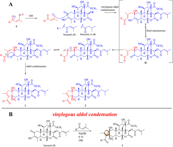 Rapid discovery and biomimetic syntheses of two unusual hemiterpene-quassinoid adducts from Brucea javanica