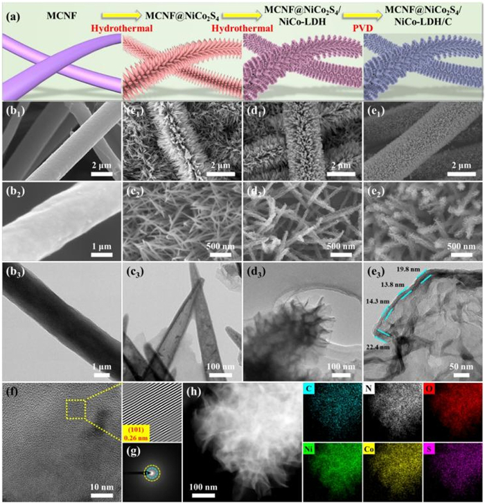 Hierarchical carbon nanofiber-based NiCo2S4/NiCo-LDH/C nanostructure array with efficient charge transfer for flexible solid-state supercapacitors