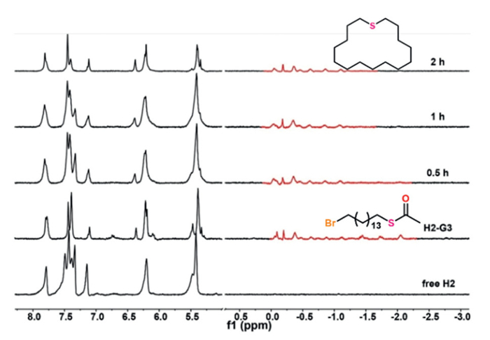 Figure 3  Stacked 1H NMR spectra of the cyclization of G3 within the dimeric capsule formed by H2.