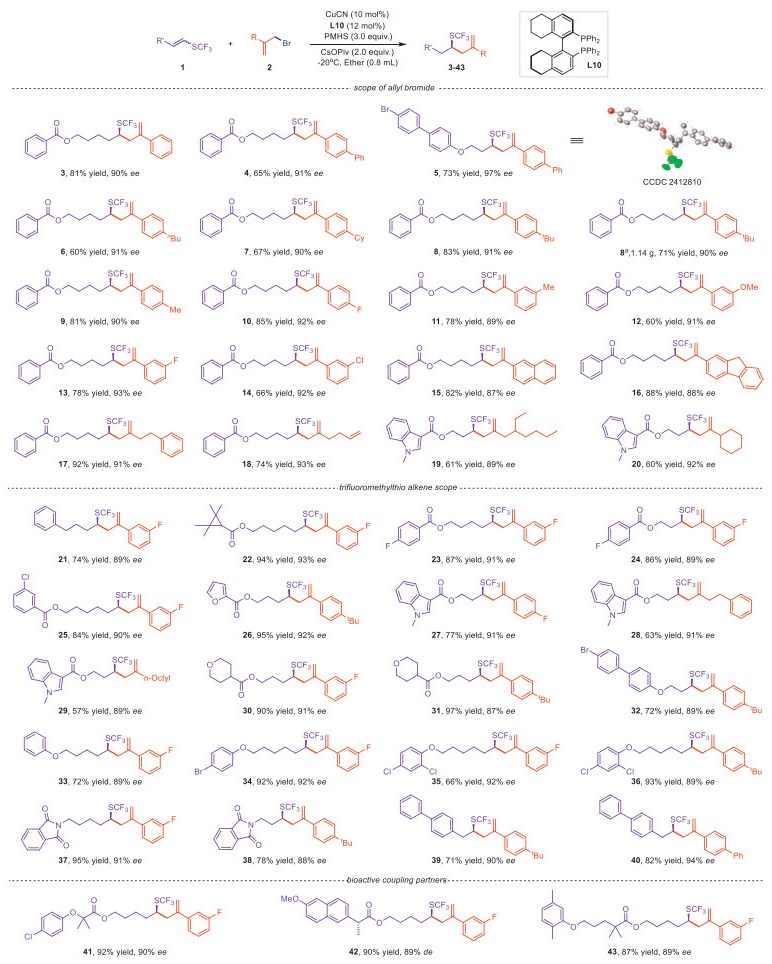 Citation: Wei-Cheng Zhao, Yan He, Chen-Hui Jiang, Peng Liu, Qian Gao, Duo-Duo Hu, Xi-Sheng Wang. Asymmetric construction of non-activated C-SCF3 stereocenter via copper-catalyzed hydroallylation of SCF3-alkenes[J]. Chinese Chemical Letters, ;2026, 37(2): 111487. doi: 10.1016/j.cclet.2025.111487 shu