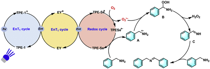Figure 4  A plausible mechanism for the benzylamine photocatalysis reaction using TPE-1/EY/TPE-Se nanoparticles as a photocatalyst in aqueous medium.