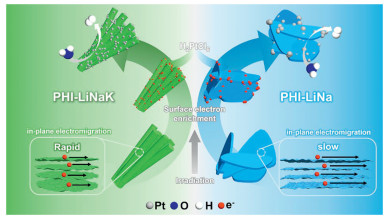 In summary, by optimizing the composition of molten salts, PHI-LiNaK photocatalyst with excellent hydrogen production performance, was successfully synthesized. The presence of Li+ occupies certain coordination sites, reduces the incorporation of other alkali metal ions, while changes in ion concentration led to the formation of a nanorod morphology. This nanorod morphology reduced the migration distance of charge carriers, thereby enhancing charge separation efficiency. Furthermore, the deposition of Pt as a co-catalyst for hydrogen production resulted in optimized PHI-LiNaK, which exhibited an excellent apparent quantum efficiency of 52.9% under visible light (λ > 420 nm). This study highlights the importance of rational control the polymerization process of PHI and optimization in the photocatalytic activity, providing new insights into the synthesis of high-performance photo-catalysts for solar hydrogen production.