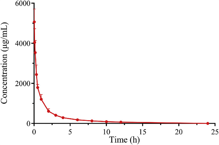 Figure 4.  Mean plasma concentration-time curve of HES130/0.4 after a single intravenous injection of 300 mg/kg HES130/0.4 to rat (data are mean ± SD, n = 6).