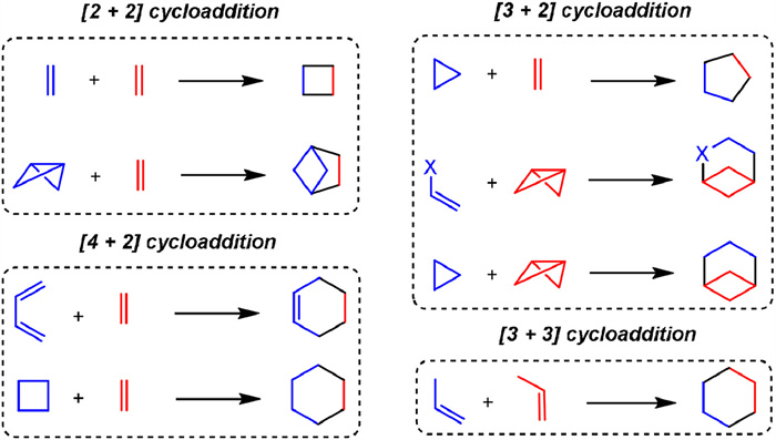 • Radical cycloaddition reactions (RCRs) are highly effective methods for constructing complex carbo- and heterocycles, which are frequently encountered in natural products that exhibit intriguing biological properties and hold significant potential for applications in medicinal chemistry. Radical-mediated cycloaddition strategies, which recycle radical character, are particularly appealing because they require only a catalytic amount of reagent and promise reactions with theoretically high atom economy. This review focuses on recent developments and synthetic applications in RCRs, with an emphasis on visible light-induced radical photocycloaddition reactions (RPCRs), transition metal-catalyzed approaches, and small molecule-catalyzed methods. By highlighting some outstanding innovations and addressing current challenges, this review aims to identify potential areas for improvement. These advancements will provide more efficient pathways for the synthesis of natural product molecules and offer valuable insights for the development of new synthetic methodologies.