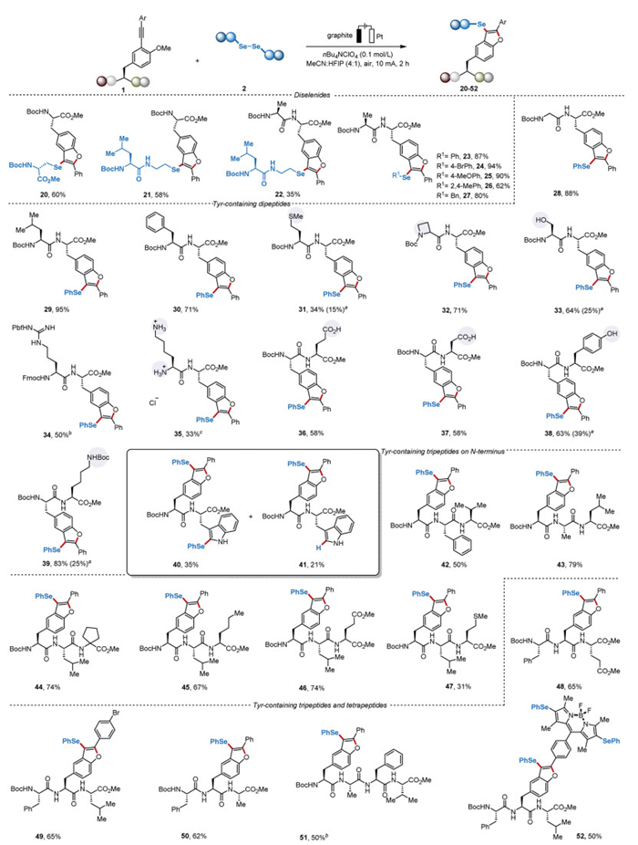 Citation: Xinwei Hu, Yong Zeng, Jiongdong Ma, Han Diao, Fei-Xiao Chen, Mu Chen, Shou-Kun Zhang, Chengzhi Jin, Shao-Fei Ni, Zhixiong Ruan. Electrochemical selenylation of tyrosine oligopeptides to benzo[b]furan-functionalized peptides[J]. Chinese Chemical Letters, ;2026, 37(3): 111928. doi: 10.1016/j.cclet.2025.111928 shu