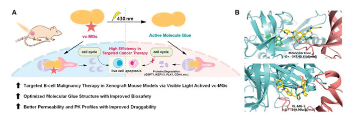 Citation: Wei Yan, Naizhen Zhang, Xiao Liu, Qiyu He, Xucheng Lv, Jianghui Sun, Lili Zhuang, Yuexin Zou, Yajie Zhang, Yuhang Liang, Yanjie Wang, Siyuan Li, Yonghui Sun. Development of visible-light photocaged molecular glues (vc-MGs) for B-cell malignancies therapy with improved safety and pharmacokinetic profiles in vivo[J]. Chinese Chemical Letters, ;2026, 37(5): 112064. doi: 10.1016/j.cclet.2025.112064 shu