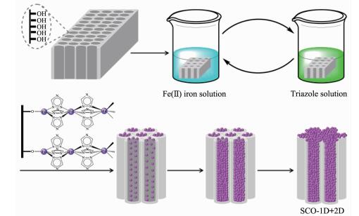 AAO Assisted 1D Confined Assembly and 2D Surface Filming of Iron(Ⅱ) Triazole Nanomaterial and Spin-Crossover Properties