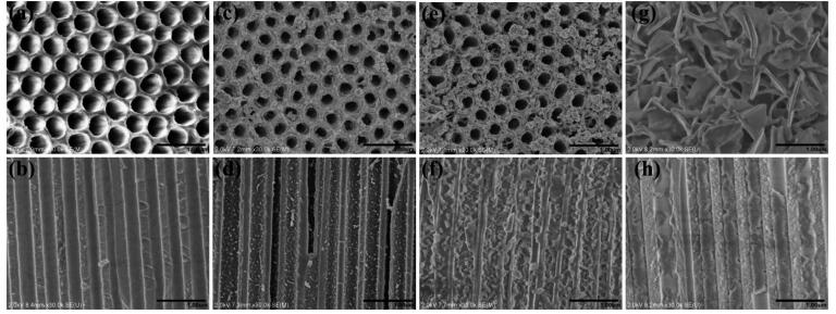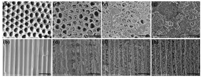 (a) and (b), (c) and (d), (e) and (f), (g) and (h) correspond to 1, 6, 12, 24 cycles, respectively