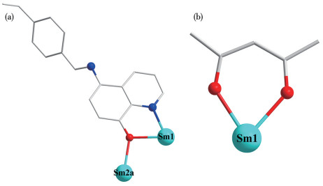 图 6.  Sm(Ⅲ)的(a) 配位环境和(b) 配位构型