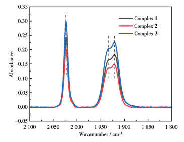 图 1.  配合物1~3在DMSO中的红外光谱图