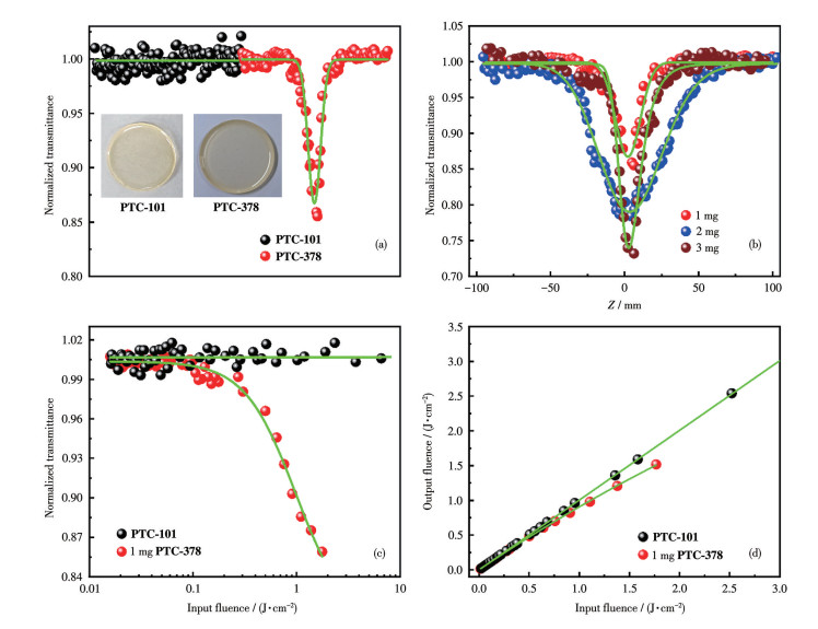 • Herein, we report the synthesis and third-order nonlinear optical (NLO) properties of a novel cage-based 2D metal-organic framework constructed from Ti4L6 (L4-=embonate) cage combined with Mg2+ and tris[4-(1H-imidazol-1-yl)phenyl]amine (tipa) ligand, whose molecular formula is (Me2CH2)2[Mg3(Ti4L6)(tipa)(H2O)12] (PTC-378). The Ti4L6 tetrahedral cages serve as robust building units, while the Mg2+ ions and tipa ligands provide structural stability and tunable optical properties. The resulting PTC-378 film exhibited intriguing third-order NLO property, which was systematically investigated using Z-scan techniques. Our results demonstrate that the synergistic interaction between Ti4L6 cages and π-conjugated ligands significantly enhances the NLO performance of the materials.