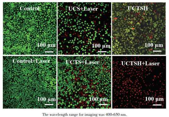 Figure 8.  Representative live/dead staining images of MCF-7 cells after incubation with UCS, UCTS, or UCTSH (250.0 μg·mL-1)