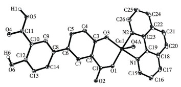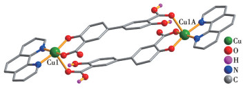 • Three copper(Ⅱ), nickel and cadmium(Ⅱ) complexes, namely [Cu2(μ-H2dbda)2(phen)2]·2H2O (1), [Ni(μ-H2dbda)(μ-bpb)(H2O)2]n (2), and [Cd(μ-H2dbda)(μ-bpa)]n (3), have been constructed hydrothermally using H4dbda (4,4′-dihydroxy-[1,1′-biphenyl]-3,3′-dicarboxylic acid), phen (1,10-phenanthroline), bpb (1,4-bis(pyrid-4-yl)benzene), bpa (bis(4-pyridyl)amine), and copper, nickel and cadmium chlorides at 160 ℃. The products were isolated as stable crystalline solids and were characterized by IR spectra, elemental analyses, thermogravimetric analyses, and single-crystal X-ray diffraction analyses. Single-crystal X-ray diffraction analyses revealed that three complexes crystallize in the monoclinic P21/n, tetragonal I42d, and orthorhombic P21212 space groups. The complexes exhibit molecular dimers (1) or 2D metal-organic networks (2 and 3). The catalytic performances in the Knoevenagel reaction of these complexes were investigated. Complex 1 exhibits an effective catalytic activity and excellent reusability as a heterogeneous catalyst in the Knoevenagel reaction at room temperature.