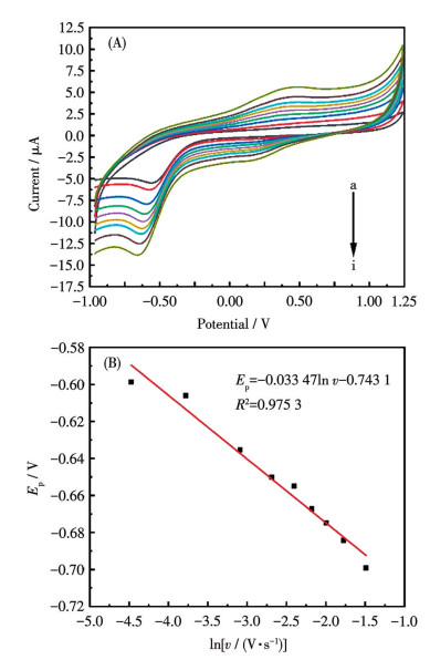 From a to i, the scan rates were 0.01, 0.02, 0.04, 0.06, 0.08, 0.10, 0.12, 0.15, 0.20 V·s-1, respectively.