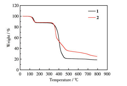 Figure 3  TGA curves of complexes 1 and 2
