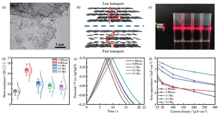 In panel c, from left to right: S-MXene, L-MXene/S-MXene(1∶1) (1∶1 Mix), L-MXene/S-MXene(2∶1) (2∶1 Mix), L-MXene/S-MXene(3∶1) (3∶1 Mix).