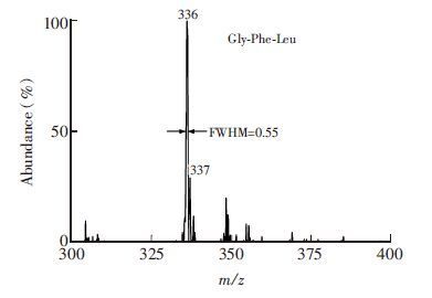 三肽Gly-Phe-Leu(GFL,m/z=336 Da,吉尔生化上海有限公司),配制成5×10-5 mol/L的溶液,溶剂采用甲醇-水(50∶50,V/V,其中含有0.05%醋酸)。