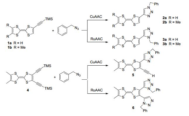 2 含端基叠氮基的四硫富瓦烯与对应的含端基炔的底物反应