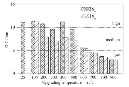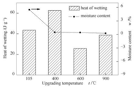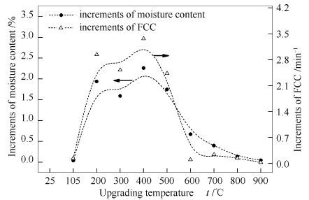 • The effect of moisture adsorption and air pre-oxidation on the spontaneous combustion liability of lignite upgraded was investigated for the purposes of obtaining the characteristics and mechanism of the spontaneous combustion liability during storage outside. By a testing apparatus for spontaneous combustion liability, the crossing-point temperature (CPT) for calculating the aggregative indicator FCC was measured for the fresh samples upgraded at the temperature ranging from 105℃ to 900℃ and for the upgraded samples suffering moisture adsorption and pre-oxidization. The changes of chemical structure were analyzed by Fourier transform infrared spectroscopy and energy dispersive spectrometer, and the evolution of pore structure was identified by physical adsorption experiments, and the difference of wetting heat for moisture absorption was determined by the micro calorimeter. The results show that the spontaneous combustion liability of fresh upgraded lignite is reduced with increasing upgrading temperature. But the adsorbing moisture and pre-oxidation make the spontaneous combustion liability of samples upgraded at 200-500℃ increase obviously comparing with the corresponding fresh upgraded samples. Pre-oxidation can increase the elemental oxygen content and the amount of oxidation active groups on the surface of samples. The oxidation active groups of aliphatic side chains, oxygen-containing functional groups, new free radicals from upgrading process, and the increase of specific surface area after deep upgrading all intensify the pre-oxidation and spontaneous combustion of the upgraded samples. The heat of wetting from adsorbing moisture not only further deepens the pre-oxidation, but also enhances the spontaneous combustion liability remarkably for the upgraded samples adsorbing more moisture.
