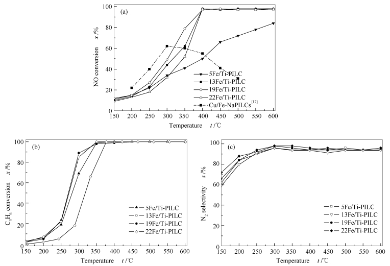 Experimental study on selective catalytic reduction of NO by C3H6 over Fe/Ti-PILC catalysts