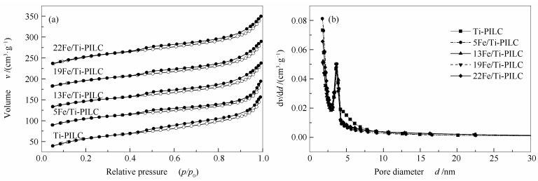 (a): N2 adsorption/desorption isotherms; (b): BJH pore size distribution