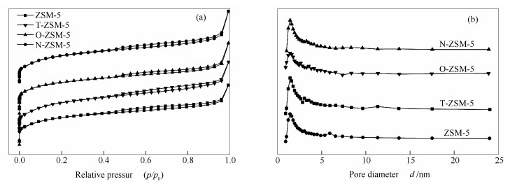 (a): ZSM-5; (b): T-ZSM-5; (c): O-ZSM-5; (d): N-ZSM-5