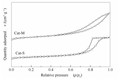 • Two NiMo catalysts using the nanosized zeolite HY-Al2O3 composite (labeled as NYA) prepared by mechanical mixing method and sol-gel method as the support were prepared and characterized by XRD, BET, TPD, H2-TPR, HRTEM and FT-IR spectroscopy. The former catalyst possessed larger pore volume and specific surface area, more acid amount, superior reducibility of metal phase and higher dispersion of edge and corner Mo atoms, and showed higher hydrodesulfurization (HDS) performance. Compared with the former catalyst, the latter catalyst had more MoO3 to be converted to active type-Ⅱ NiMoS phase, possessed higher stacking degree and bigger length of MoS2 slabs, and showed lower active phase dispersion. Although the sol-gel method was beneficial to increase the precursor ratio of type-Ⅱ NiMoS phase, the poor pore structure caused by this method inhibited this advantage and reduced the catalytic activity of the catalyst.