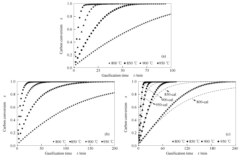 (800-gasification at 800 ℃, cal-calculated gasification reactivity curve)