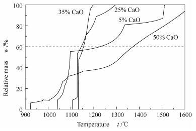 (a): CaO 5%; (b): CaO 25%; (c): CaO 35%; (d): CaO 50%