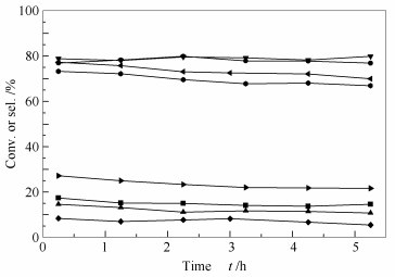 the reactions were conducted at atmospheric pressure and 150 ℃, with GHSV of 1 800 h-1 and DME/O2 ratio of 1:1