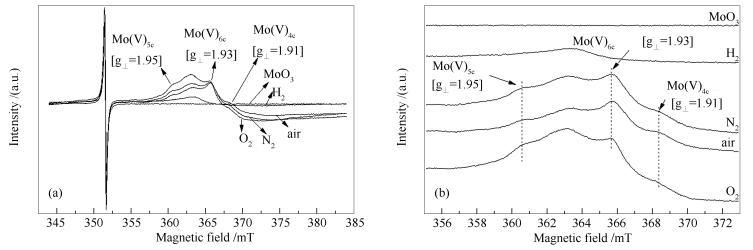 (a): ESR spectrum; (b): enlargement of spectrum Mo5+
