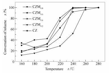 Effect of Mn content on the catalytic performance of CeO2-ZrO2-MnOx in the oxidation of toluene