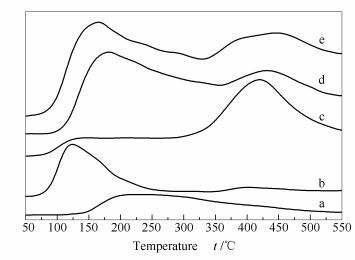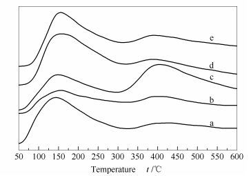 a: AlPO4-5; b: Cu(15)/AlPO4-5; c: Fe(6)/AlPO4-5; d: Cu(15)-Fe(6)/AlPO4-5; e: Cu(15)-Fe(6)-MgO(1)/AlPO4-5