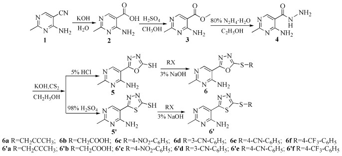 Citation: Wu Wenneng, Fei Qiang, He Jun, Liu Lei, Ouyang Guiping. Syntheses and Biological Activities of 1, 3, 4-Oxadiazole (Thiadiazole) Thioether Derivatives Containing Pyrimidine Moiety[J]. Chemistry, ;2019, 82(1): 74-79. shu