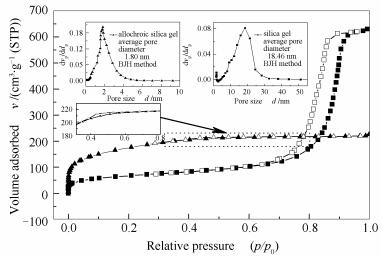 —■—: silica gel adsorption; —□—: silica gel desorption; —▲—: allochroic silica gel adsorption; —△—: allochroic silica gel desorption