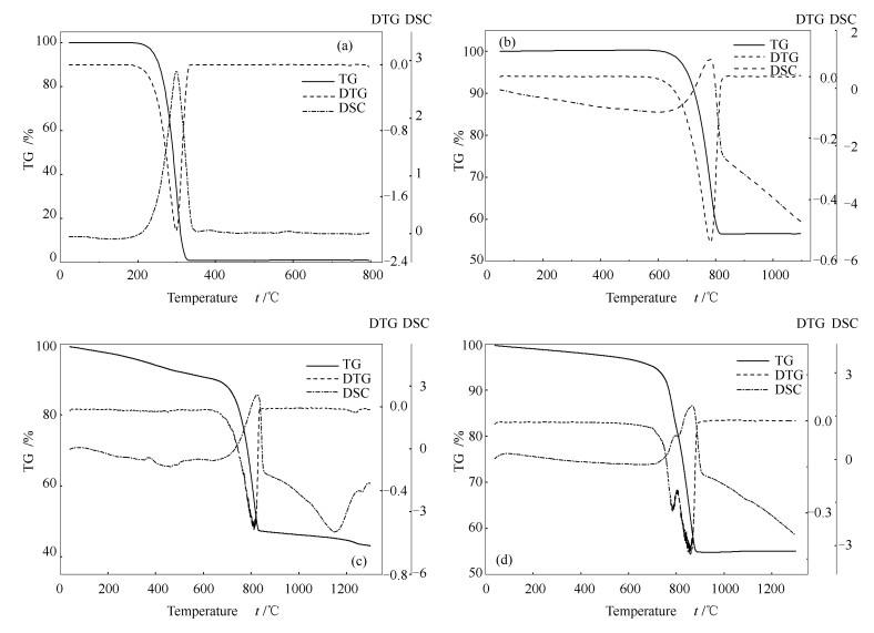 (a): SeO2; (b): CaCO3; (c): calcite; (d): dolomite