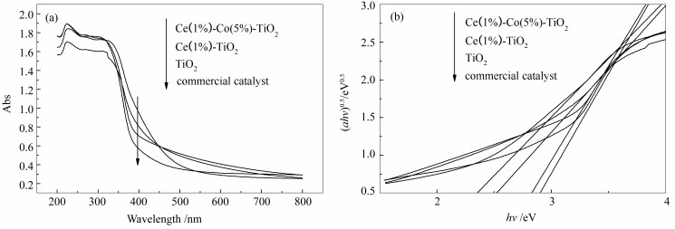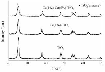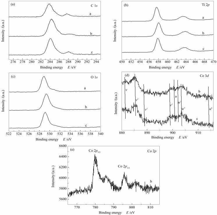 a: TiO2; b: Ce(1%)-Co(5%)-TiO2; c: Ce(1%)-TiO2