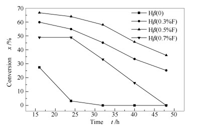a: H β; b: H β (0.3%F); c: H β (0.5%F); d: H β (0.7%F)