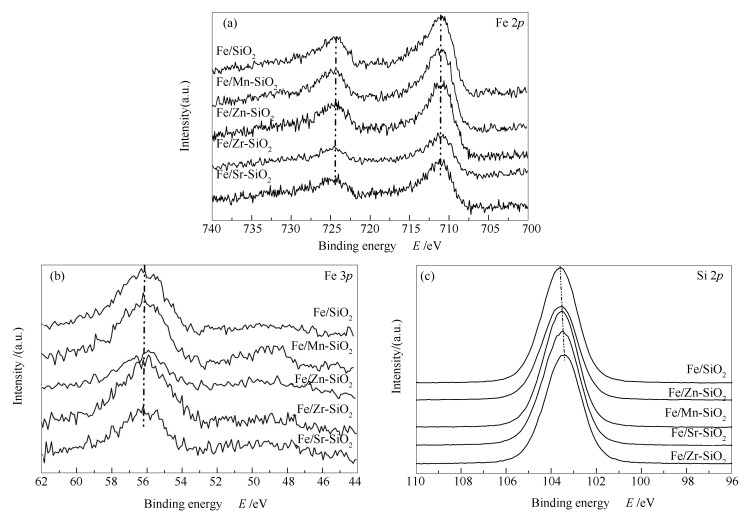 (a): Fe 2p; (b): Fe 3p; (c): Si 2p