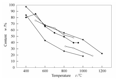 □: Wang Xuebin (Meffle furnance, 1 h); ○: Liu Dahai (Meffle furnance, 2-3 h); ▲: Tao Yujie (Tube furnance, 3 h); ▼: Liu Jing (Tube furnance, 2 h); ◆: Author (Meffle furnance, 6 min)