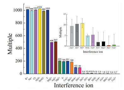 A catalytic kinetic fluorescence method was developed using Co(Ⅱ) as a catalyst to catalyze the oxidation of morin by hydrogen peroxide. In the buffer solution of Na2B4O7·10H2O-NaOH at pH 10.70, trace cobalt (Ⅱ) ion has obvious catalytic effect on the oxidation of 4.0×10-7mol/L morin solution with 0.24% H2O2 solution. At the maximum wavelength (λex/λem=416.5nm/556.4nm), the fluorescence intensity of the system is linearly correlated with the concentration of Co (Ⅱ) in a concentration range of 0.8~8.0 μg/L, and the detection limit is 0.14 μg/L. The optimal conditions of the system were optimized and the ion interference of the system was investigated. The sierozem and molecular sieves samples were analyzed, the recovery rate were 95.0%~110.0% and 98.9%~101.9%.