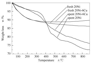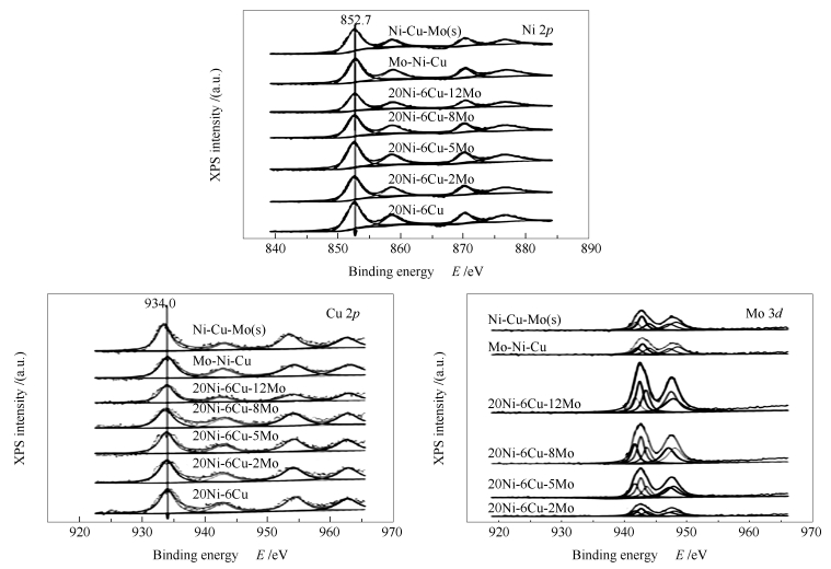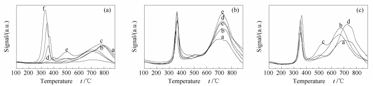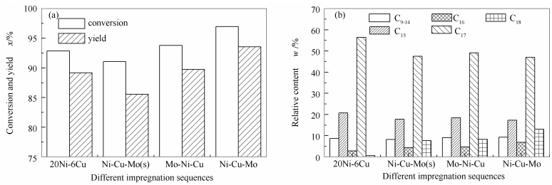 (c): a: 20Ni-6Cu/γ-Al2O3; b: Ni-Cu-Mo(s)/γ-Al2O3; c: Ni-Cu-Mo/γ-Al2O3; d: Mo-Ni-Cu/γ-Al2O3